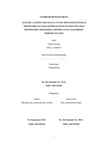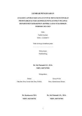 Sundari, Fadila (2025) ANALISIS LAPORAN KEUANGAN UNTUK MENGUKUR TINGKAT PROFITABILITAS PADA KOPERASI PENGAYOMAN PEGAWAI DEPARTEMEN KEHAKIMAN (KPPDK) LAPAS SUKAMISKIN PERIODE 2021-2023. Skripsi(S1) thesis, FISIP UNPAS.