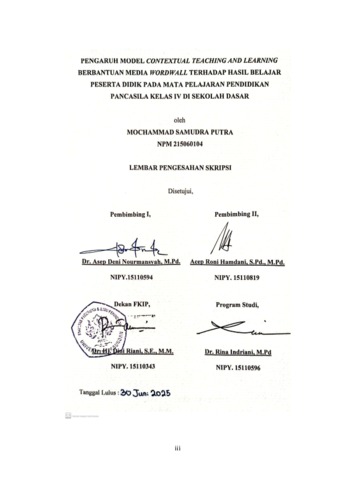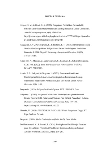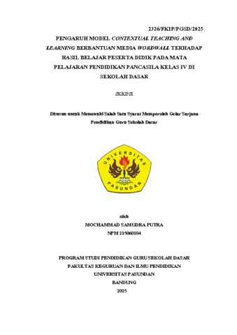 PUTRA MOCHAMMAD SAMUDRA, 215060104 (2025) PENGARUH MODEL CONTEXTUAL TEACHING AND LEARNING BERBANTUAN MEDIA WORDWALL TERHADAP HASIL BELAJAR PESERTA DIDIK PADA MATA PELAJARAN PENDIDIKAN PANCASILA KELAS IV DI SEKOLAH DASAR. Skripsi(S1) thesis, FKIP UNPAS.
