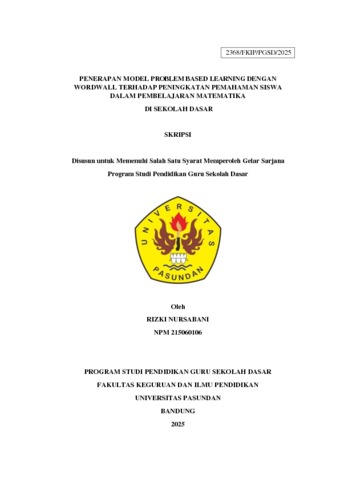 NURSABANI RIZKI, 215060106 (2025) PENERAPAN MODEL PROBLEM BASED LEARNING DENGAN WORDWALL TERHADAP PENINGKATAN PEMAHAMAN SISWA DALAM PEMBELAJARAN MATEMATIKA DI SEKOLAH DASAR. Skripsi(S1) thesis, FKIP UNPAS.