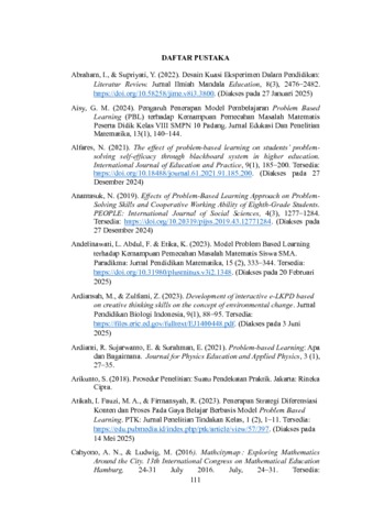 PERMATASARI PUTRI, 215050011 (2025) PENINGKATAN KEMAMPUAN PEMECAHAN MASALAH MATEMATIS DAN SELF-EFFICACY SISWA SMA MELALUI MODEL PROBLEM-BASED LEARNING BERBANTUAN MATH CITY MAP. Skripsi(S1) thesis, FKIP UNPAS.