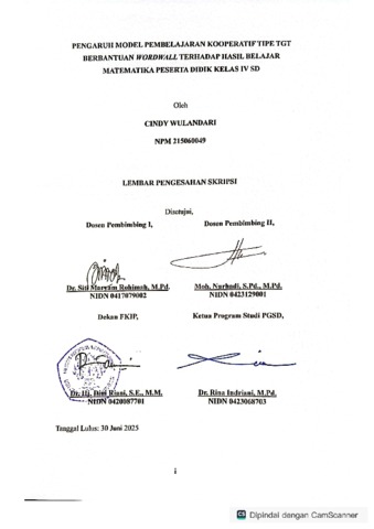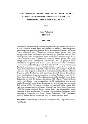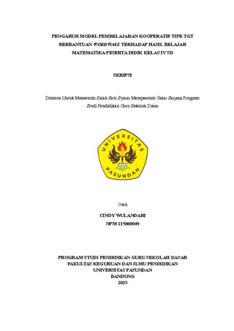 WULANDARI CINDY, 215060049 (2025) PENGARUH MODEL PEMBELAJARAN KOOPERATIF TIPE TGT BERBANTUAN WORDWALL TERHADAP HASIL BELAJAR MATEMATIKA PESERTA DIDIK KELAS IV SD. Skripsi(S1) thesis, FKIP UNPAS.