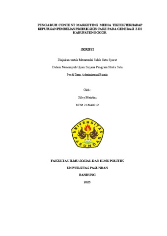 Meistira, Silvy (2025) PENGARUH CONTENT MARKETING MEDIA TIKTOK TERHADAP KEPUTUSAN PEMBELIAN PRODUK SKINCARE PADA GENERASI Z DI KABUPATEN BOGOR. Skripsi(S1) thesis, FISIP UNPAS.