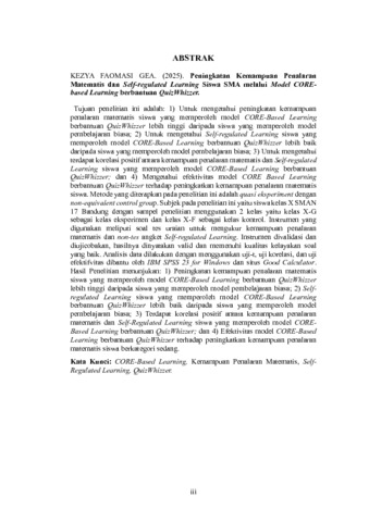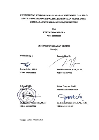 GEA,KEZYA FAOMASI, 215050018 (2025) PENINGKATAN KEMAMPUAN PENALARAN MATEMATIS DAN SELFREGULATED LEARNING SISWA SMA MELALUI MODEL CORE-BASED LEARNING BERBANTUAN QUIZWHIZZER. Skripsi(S1) thesis, FKIP UNPAS.
