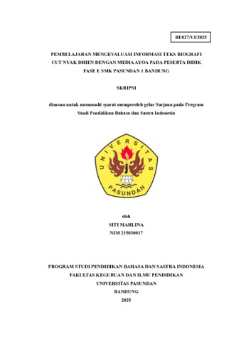 MARLINA SITI, 215030017 (2025) PEMBELAJARAN MENGEVALUASI INFORMASI TEKS BIOGRAFI CUT NYAK DHIEN DENGAN MEDIA AYOA PADA PESERTA DIDIK FASE E SMK PASUNDAN 1 BANDUNG. Skripsi(S1) thesis, FKIP UNPAS.