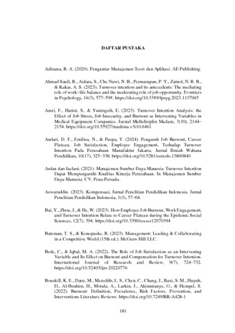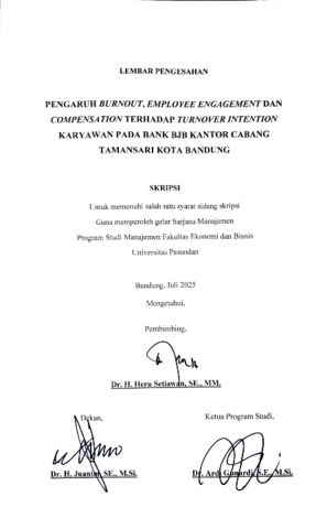 Tria Apriyani Siahaan, 214010231 and Dr. H. Heru Setiawan, SE.,MM, Pembimbing (2025) PENGARUH BURNOUT, EMPLOYEE ENGAGEMENT DAN COMPENSATION TERHADAP TURNOVER INTENTION KARYAWAN PADA BANK BJB KANTOR CABANG TAMANSARI KOTA BANDUNG. Skripsi(S1) thesis, Universitas Pasundan Bandung.