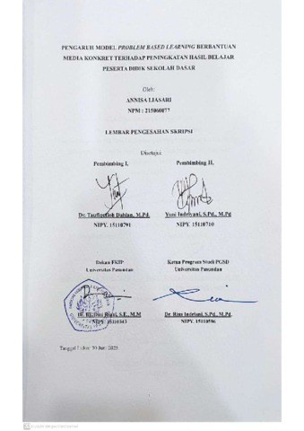 LIASARI ANNISA, 215060077 (2025) PENGARUH MODEL PROBLEM BASED LEARNING BERBANTUAN MEDIA KONKRET TERHADAP PENINGKATAN HASIL BELAJAR PESERTA DIDIK SEKOLAH DASAR. Skripsi(S1) thesis, FKIP UNPAS.