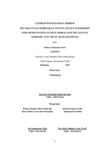 Fitra, Raisya Akhwatun (2025) PELAKSANAAN KEBIJAKAN ONLINE SINGLE SUBMISSION (OSS) DI DINAS PENANAMAN MODAL DAN PELAYANAN TERPADU SATU PINTU KOTA BANDUNG. Skripsi(S1) thesis, FISIP UNPAS.