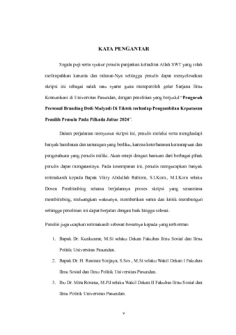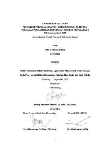 Novianti, Vena Dwiana (2025) PENGARUH PERSONAL BRANDING DEDI MULYADI DI TIKTOK TERHADAP PENGAMBILAN KEPUTUSAN PEMILIH PEMULA PADA PILKADA JABAR 2024. Skripsi(S1) thesis, FISIP UNPAS.