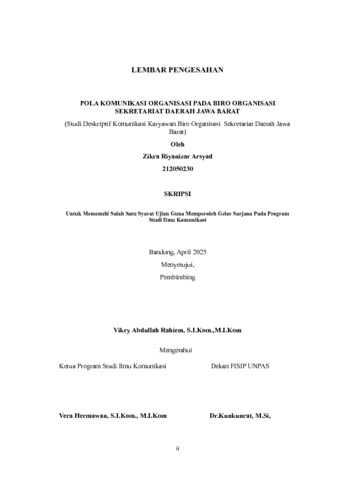 Arsyad, Zikra Riyanizar (2025) POLA KOMUNIKASI ORGANISASI PADA BIRO ORGANISASI SEKRETARIAT DAERAH JAWA BARAT. Skripsi(S1) thesis, FISIP UNPAS.