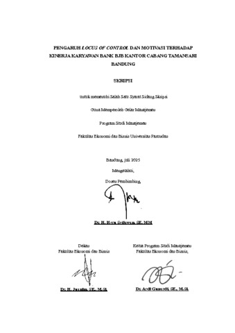 Shinta Hani, 214010094 and Dr. H. Heru Setiawan, SE.,MM, Pembimbing (2025) PENGARUH LOCUS OF CONTROL DAN MOTIVASI TERHADAP KINERJA KARYAWAN BANK BJB KANTOR CABANG TAMANSARI BANDUNG. Skripsi(S1) thesis, Universitas Pasundan Bandung.