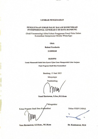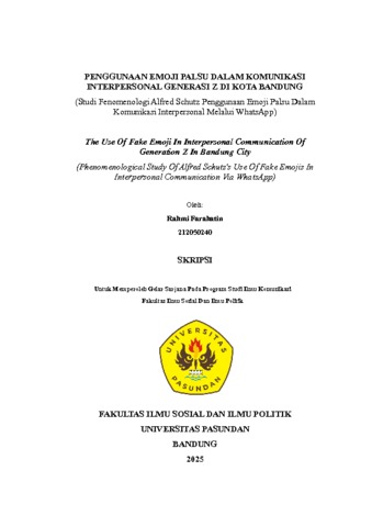 Farahatin, Rahmi (2025) PENGGUNAAN EMOJI PALSU DALAM KOMUNIKASI INTERPERSONAL GENERASI Z DI KOTA BANDUNG. Skripsi(S1) thesis, FISIP UNPAS.