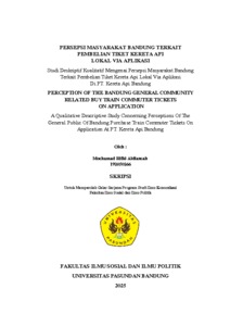 Aldiansah, Mochamad Rifki (2025) PERSEPSI MASYARAKAT BANDUNG TERKAIT PEMBELIAN TIKET KERETA API LOKAL VIA APLIKASI. Skripsi(S1) thesis, FISIP UNPAS.