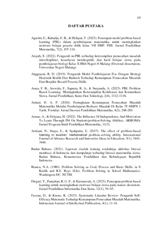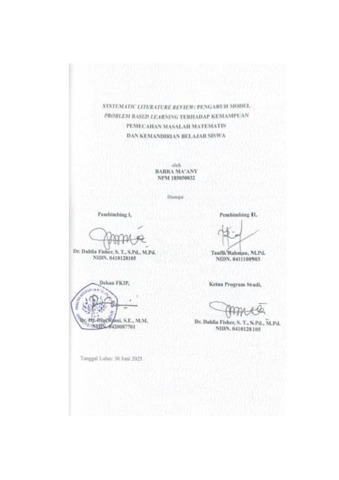 MA’ANY BARRA, 185050032 (2025) SYSTEMATIC LITERATURE REVIEW: PENGARUH MODEL PROBLEM BASED LEARNING TERHADAP KEMAMPUAN PEMECAHAN MASALAH MATEMATIS DAN KEMANDIRIAN BELAJAR SISWA. Skripsi(S1) thesis, FKIP UNPAS.