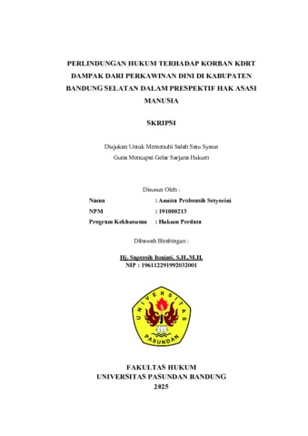 Annisa Proboasih Setyorini, Annisa Proboasih Setyorini (2025) PERLINDUNGAN HUKUM TERHADAP KORBAN KDRT DAMPAK DARI PERKAWINAN DINI DI KABUPATEN BANDUNG SELATAN DALAM PRESPEKTIF HAK ASASI MANUSIA. Skripsi(S1) thesis, FAKULTAS HUKUM UNIVERSITAS PASUNDAN.