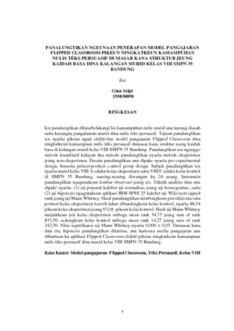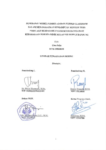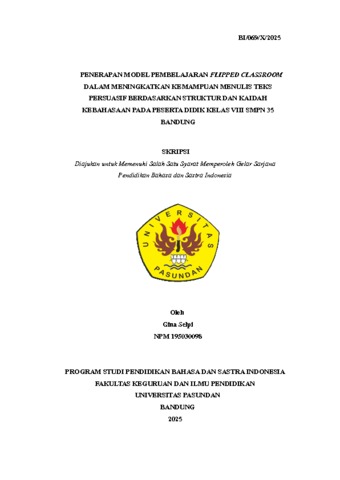 Selpi,Gina, 195030098 (2025) PENERAPAN MODEL PEMBELAJARAN FLIPPED CLASSROOM DALAM MENINGKATKAN KEMAMPUAN MENULIS TEKS PERSUASIF BERDASARKAN STRUKTUR DAN KAIDAH KEBAHASAAN PADA PESERTA DIDIK KELAS VIII SMPN 35 BANDUNG. Skripsi(S1) thesis, FKIP UNPAS.
