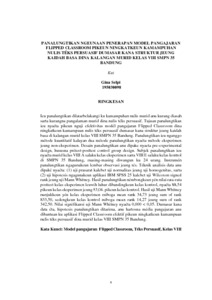 Penelitian ini di latar belakangi oleh keterampilan menulis peserta didik yang kurang terasah dan peserta didik minim pengalaman menulis persuasif. Tujuan penelitian ini untuk menguji efektivitas kemampuan dalam meningkatkan menulis teks persuasif berdasarkan struktur dan kaidah kebahasaan dengan model pembelajaran Flipped Classroom pada peserta didik kelas VIII SMPN 35 Bandung. Dalam penelitian kuantitatif terdapat dua metode penelitian, yaitu metode eksperimen dan non-eksperimen. Desain penelitian yang digunakan pre-experimental Design yaitu bentuk desain pretest-posttest control grup design. Subjek penelitian ini yaitu didik kelas VIII A sebagai kelas eksperimen dan VIII E sebagai kelas kontrol di SMPN 35 Bandung yang masing-masing berjumlah 24 orang. Instrumen penelitian menggunakan lembar observasi dan tes. Teknik analisis data yang digunakan yaitu 1) uji prasyarat yang meliputi uji normalitas, dan uji homogenitas, 2) uji hipotesis menggunakan aplikasi IBM SPSS 25 yang meliputi uji wilcoxon signed rank, dan uji mann whitney. Hasil penelitian ini menunjukkan bahwa nilai rata-rata posttest kelas eksperimen lebih besar dibandingkan kelas kontrol. Nilai rata-rata kelas eksperimen yaitu, 88,54 dan nilai rata-rata kelas kontrol 84,03. Hasil perhitungan yang telah penulis lakukan dengan hasil analisis uji mann whitney. Pada uji tersebut diketahui bahwa kelas eksperimen memperoleh nilai mean rank sebesar 34,73 dan nilai sum of rank sebesar 833,50. Sedangkan kelas kontrol memperoleh nilai mean rank sebesar 14,27 dan nilai sum of rank sebesar 342,50 dengan total hasil keseluruhan dari uji mann whitney yaitu, 0,000 < 0,05. Dari data yang diperoleh tersebut maka hipotesis diterima dan model pembelajaran Flipped Classroom efektif digunakan dalam pembelajaran menulis teks persuasif pada peserta didik kelas VIII SMPN 35 Bandung. Kata kunci: Model Pembelajaran Flipped Classroom, Teks Persuasif, Kelas VIII