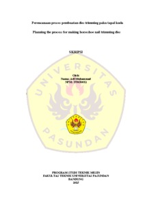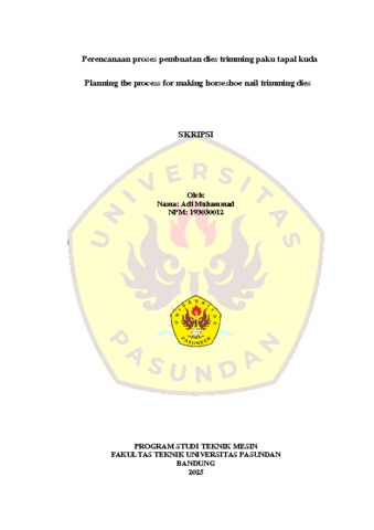 Muhammad, Adi (2025) Perencanaan proses pembuatan dies trimming paku tapal kuda. Skripsi(S1) thesis, Fakultas Teknik Unpas.