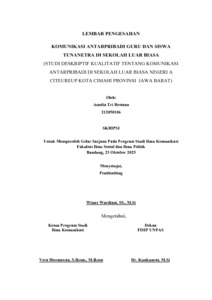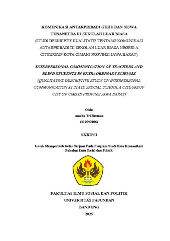 Restana, Amelia Tri (2025) KOMUNIKASI ANTARPRIBADI GURU DAN SISWA TUNANETRA DI SEKOLAH LUAR BIASA. Skripsi(S1) thesis, FISIP UNPAS.