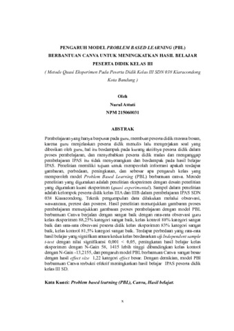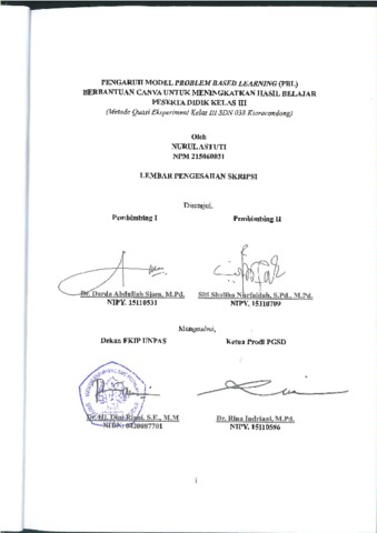 Astuti,Nurul, 215060031 (2025) PENGARUH MODEL PROBLEM BASED LEARNING (PBL) BERBANTUAN CANVA UNTUK MENINGKATKAN HASIL BELAJAR PESERTA DIDIK KELAS III (Metode Quasi Eksperiment Kelas III SDN 038 Kiaracondong). Skripsi(S1) thesis, FKIP UNPAS.