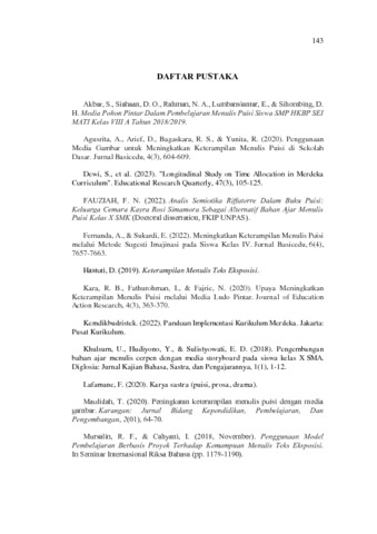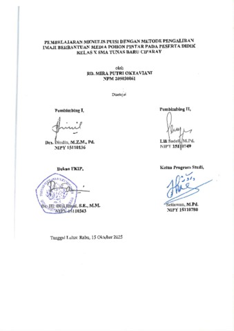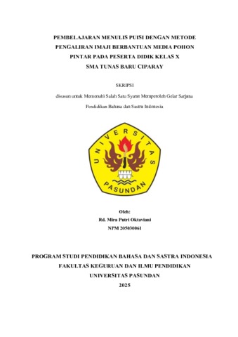 Oktaviani Rd. Mira Putri, 205030061 (2025) PEMBELAJARAN MENULIS PUISI DENGAN METODE PENGALIRAN IMAJI BERBANTUAN MEDIA POHON PINTAR PADA PESERTA DIDIK KELAS X SMA TUNAS BARU CIPARAY. Skripsi(S1) thesis, FKIP UNPAS.