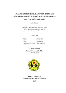 Witri Safitri, Witri Safitri (2025) ANALISIS YURIDIS TERHADAP KASUS MABUK AIR REBUSAN PEMBALUT DITINJAU DARI UU NO 35 TAHUN 2009 TENTANG NARKOTIKA. Skripsi(S1) thesis, FAKULTAS HUKUM UNIVERSITAS PASUNDAN.