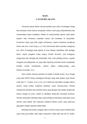 Indonesia, sebagai negara hukum, menjamin perlindungan hukum bagi setiap warga negaranya. Hukum berfungsi mengatur perilaku masyarakat dan menciptakan ketertiban. Tindak pidana mabuk rebusan pembalut merupakan realitas sosial yang memprihatinkan dan membutuhkan kajian mendalam. Praktik ini mencerminkan adanya celah dalam regulasi serta minimnya kesadaran hukum dan kesehatan di masyarakat.Hal ini terjadi karena berbagai faktor seperti pengaruh teman sebaya, kondisi ekonomi, serta kurangnya pengawasan dari keluarga dan pemerintah. Dari sudut pandang hukum, regulasi mengenai penyalahgunaan zat yang tidak tergolong narkotika masih menghadapi kendala karena keterbatasan definisi dalam undang-undang yang berlaku. Penelitian ini mengkaji fenomena ini dalam perspektif hukum pidana yaitu untuk memahami keberadaan fenomena ini dalam konteks hukum, sosial, dan kesehatan. penelitian ini tidak hanya melihat aspek legalitasnya tetapi juga berusaha memahami konsep dasar dari zat adiktif dalam sistem hukum yang berlaku. Individu yang terlibat dalam praktik ini berusaha mencari alternatif yang lebih murah dan lebih mudah diakses untuk mendapatkan sensasi yang serupa dengan penggunaan narkotika, meskipun dengan risiko kesehatan yang belum sepenuhnya dipahami..Secara eksplisit, Undang-Undang Nomor 35 Tahun 2009 tentang Narkotika tidak mencantumkan kandungan dalam pembalut sebagai narkotika atau psikotropika. Namun, fenomena ini perlu ditinjau secara normatif dan teleologis berdasarkan tujuan hukum dan efeknya. Zat yang digunakan dalam air rebusan pembalut tidak masuk dalam kategori narkotika berdasarkan lampiran daftar golongan narkotika (Golongan I, II, atau III) yang telah ditetapkan pemerintah melalui Peraturan Menteri Kesehatan. Dalam praktiknya, tindakan remaja tersebut memanfaatkan celah dalam hukum, di mana mereka mencari zat alternatif di luar daftar resmi narkotika/psikotropika namun tetap menghasilkan efek halusinogen atau euforia. Ini menciptakan dilema hukum, karena aparat penegak hukum kesulitan menjerat pelaku berdasarkan UU No. 35 Tahun 2009. Solusi hukum untuk mengantisipasi zat non konvensional pada pembalut yang tidak tercantum dalam UU Narkotika yaitu adanya evaluasi dan revisi terhadap UU Narkotika. Kata Kunci: Mabuk Air Rebusan Pembalut, Narkotika, Zat Non Konvensional, Tindakan Hukum