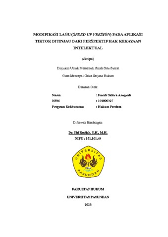 Farah Sahira Anugrah, Farah Sahira Anugrah (2025) MODIFIKASI LAGU (SPEED UP VERSION) PADA APLIKASI TIKTOK DITINJAU DARI PERSPEKTIF HAK KEKAYAAN INTELEKTUAL. Skripsi(S1) thesis, FAKULTAS HUKUM UNIVERSITAS PASUNDAN.