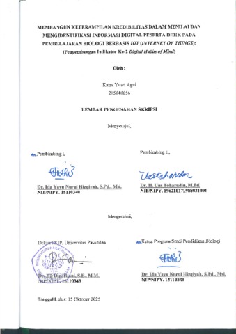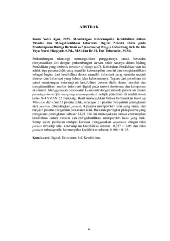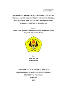Agni Kaisa Yusri, 215040056 (2025) MEMBANGUN KETERAMPILAN KREDIBILITAS DALAM MENILAI DAN MENGIDENTIFIKASI INFORMASI DIGITAL PESERTA DIDIK MELALUI PEMBELAJARAN BIOLOGI BERBASIS INTERNET OF THINGS (IoT). Skripsi(S1) thesis, FKIP UNPAS.