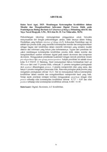 Perkembangan teknologi memungkinkan penggunanya untuk berusaha menyesuaikan diri dengan perkembangan zaman, salah satunya dalam bidang Pendidikan yang berbasis internet of things (IoT). Kebutuhan Pendidikan saat ini adalah tipe peserta didik yang memiliki keterampilan menilai dan mengidentifikasi sebagai bagian dari kredibilitas dalam memilih informasi yang semakin mudah diakses dan informasi yang belum jelas kebenarannya. Tujuan dari penelitian ini yakni membangun keterampilan kredibilitas peserta didik dalam menilai dan mengidentifikasi sumber informasi digital pada materi ekosistem dan komponen ekosistem. Menggunakan pendekatan kuantitatif dengan metode penelitian desain pre-eksperimen tipe one-group pretest-posttest. Subjek penelitian ini adalah siswa kelas X-4 SMAN 22 Bandung. Hasil menunjukkan bahwa berdasarkan hasil uji Wilcoxon dari total 33 peserta didik, sebanyak 21 peserta mengalami peningkatan skor posttest dibandingkan pretest, 4 peserta memperoleh nilai yang sama, dan hanya 6 peserta mengalami penurunan nilai. Rata-rata peringkat pada peserta yang mengalami peningkatan sebesar 14,21. Hal ini menunjukkan bahwa keterampilan kredibilitas dalam menilai dan mengidentifikasi memperoleh hasil yang baik. Setiap aspek penilaian terdapat korelasi menggunakan spearman dengan nilai pretest terhadap nilai keterampilan kredibilitas sebesar 0,727 > 0,05 dan nilai posttest terhadap nilai keterampilan kredibilitas sebesar, 0.606 > 0. 05. Kata kunci: Digital, Ekosistem, IoT, Kredibilitas.