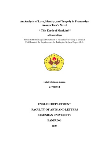 Indri Maimun Zahra, Restu Dessy Maulidia.,S.S.,M.Pd (2025) An Analysis of Love, Identity, and Tragedy in Pramoedya Ananta Toer's Novel “ This Earth of Mankind “.NPM:217010014. Skripsi(S1) thesis, Sastra Inggris.