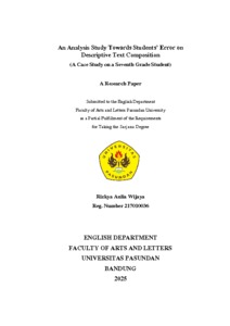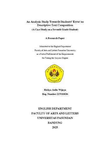 Rizkya Aulia Wijaya, Restu Dessy Maulida, S.S., M.Pd. (2025) An Analysis Study Towards Students’ Error on Descriptive Text Composition.NPM:217010036. Skripsi(S1) thesis, Sastra Inggris.