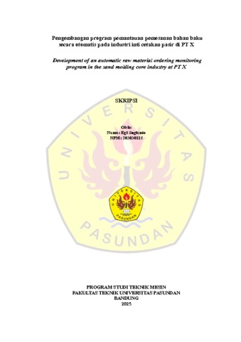 Sugianto, Egi (2025) Pengembangan program pemantauan pemesanan bahan baku secara otomatis pada industri inti cetakan pasir di PT X. Skripsi(S1) thesis, Fakultas Teknik Unpas.