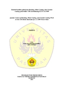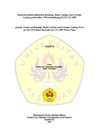 Muhammad Dzulfiqar, Faiz (2025) Kontrol kualitas pekerjaan Retubing, Metal Coating, dan Ceramic Coating pada boiler CFB sisi belakang PLTU 112 MW. Skripsi(S1) thesis, Fakultas Teknik Unpas.