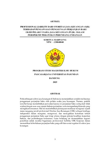 MARPAUNG, SORITUA (2025) PROFESSIONAL LIABILITY DARI OTORITAS JASA KEUANGAN (OJK) TERHADAP PENGAWASAN PENGGUNAAN PERJANJIAN BAKU OLEH PELAKU USAHA JASA KEUANGAN (PUJK) DALAM PERSPEKTIF PERATURAN PERUNDANG-UNDANGAN. Thesis(S2) thesis, UNIVERSITAS PASUNDAN.