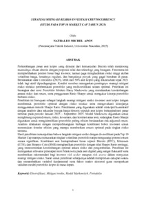 Perkembangan pesat aset kripto yang dimulai dari kemunculan Bitcoin telah mendorong munculnya ribuan altcoin dengan proposisi nilai dan teknologi yang beragam. Fenomena ini memperlihatkan potensi besar bagi investor, namun juga menghadirkan risiko tinggi akibat volatilitas harga, lemahnya regulasi, dan banyaknya proyek yang gagal bertahan di pasar. Berdasarkan data CoinGecko (2025), lebih dari 50% aset kripto yang diluncurkan sejak 2021 tidak lagi aktif diperdagangkan. Kondisi tersebut menegaskan pentingnya strategi mitigasi risiko melalui pembentukan portofolio yang terdiversifikasi secara optimal. Penelitian ini berangkat dari teori Portofolio Modern Harry Markowitz yang menekankan keseimbangan antara risiko dan return, serta penggunaan Rasio Sharpe untuk mengukur kinerja portofolio berbasis risiko. Penelitian ini bertujuan sebagai langkah strategi mitigasi resiko investasi aset kripto dengan membentuk portofolio optimal dengan risiko terukur serta mengevaluasi kinerjanya menggunakan metode Sharpe Ratio. Pendekatan yang digunakan adalah deskriptif kuantitatif dengan analisis data sekunder berupa harga historis sepuluh aset kripto berkapitalisasi pasar terbesar pada periode Januari 2025 – September 2025. Model Markowitz digunakan untuk menghitung expected return, risiko, kovarians, dan korelasi antar aset, sedangkan Rasio Sharpe digunakan untuk mengidentifikasi portofolio paling efisien berdasarkan risk-adjusted return. Analisis dilakukan dengan memperhitungkan berbagai kombinasi bobot investasi untuk menemukan frontier efisien yang mampu memberikan return optimal pada tingkat risiko tertentu. Hasil penelitian menunjukkan bahwa langkah mitigasi resiko dengan diversifikasi pada Top 10 Market Cap mampu menurunkan tingkat volatilitas portofolio tanpa mengurangi potensi return secara signifikan. Kombinasi aset berkapitalisasi besar seperti Bitcoin (BTC), Ethereum (ETH), dan Binance Coin (BNB) menghasilkan portofolio dengan nilai Sharpe Ratio tertinggi, yang mencerminkan keseimbangan optimal antara risiko dan pengembalian. Penelitian ini menegaskan relevansi penerapan teori Markowitz pada aset digital yang sangat fluktuatif serta memberikan rekomendasi bagi investor risk seeker maupun risk averse dalam menyusun strategi mitigasi risiko. Saran untuk penelitian selanjutnya adalah memperluas cakupan waktu dan menambahkan variabel fundamental serta faktor makro ekonomi guna memperkuat validitas model portofolio kripto di masa depan. Keyword: Diversifikasi, Mitigasi resiko, Model Markowitch, Portofolio