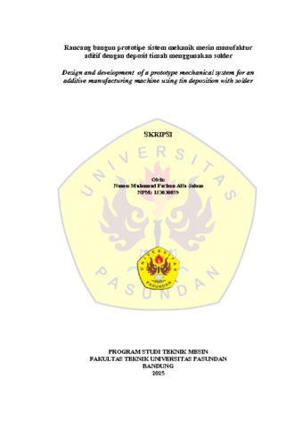Salam, : Muhamad Farhan Alfa (2025) Rancang bangun prototipe sistem mekanik mesin manufaktur aditif dengan deposit timah menggunakan solder. Skripsi(S1) thesis, Fakultas Teknik Unpas.