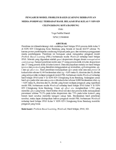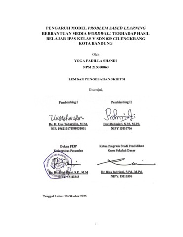 Shandi Yoga Fadilla, 215060060 (2025) PENGARUH MODEL PROBLEM BASED LEARNING BERBANTUAN MEDIA WORDWALL TERHADAP HASIL BELAJAR IPAS KELAS V SDN 029 CILENGKRANG KOTA BANDUNG. Skripsi(S1) thesis, FKIP UNPAS.
