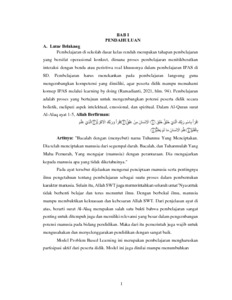 Penelitian ini dilatarbelakangi oleh rendahnya hasil belajar IPAS peserta didik kelas V di SDN 029 Cilengkrang Kota Bandung yang berada di bawah KKTP sebesar 70, karena proses pembelajaran cenderung berpusat pada guru dan minimnya penggunaan media pembelajaran. Penelitian ini bertujuan untuk mengetahui pengaruh model Problem Based Learning (PBL) berbantuan media Wordwall terhadap hasil belajar IPAS. Metode yang digunakan adalah quasi eksperimen dengan desain nonequivalent control group. Sampel penelitian terdiri atas 27 orang peserta didik di kelas eksperimen dan 27 orang peserta didik di kelas kontrol. Data dikumpulkan melalui tes hasil belajar (pretest dan posttest) yang dianalisis menggunakan uji normalitas, uji homogenitas, ujit dan uji effect size. Hasil penelitian menunjukkan uji-t untuk nilai rata-rata pretest di kedua kelas sebesar 0,148 berdasarkan nilai sig > 0,05 maka Ho diterima dan Ha ditolak yang artinya tidak terdapat pengaruh model PBL berbantuan media Wordwall terhadap hasil belajar IPAS kelas V di SDN 029 Cilengkrang Kota Bandung. Sedangkan untuk hasil uji-t pada nilai rata-rata posttest dikedua kelas sebesar 0,000 berdasarkan nilai sig < 0,05 maka Ha diterima dan Ho ditolak yang berati terdapat pengaruh yang signifikan model PBL berbantuan media Wordwall terhadap hasil belajar IPAS kelas V di SDN 029 Cilengkrang Kota Bandung. Untuk uji effect size menghasilkan 1,796 yang memiliki effect yang besar. Hasil lembar observasi aktivitas peserta didik menunjukkan persentase sebesar 79,5% pada kelas eksperimen dan 73% pada kelas kontrol yang berarti hasil tersebut memiliki kategori cukup baik. Berdasarkan hasil penelitian tersebut, maka dapat disimpulkan bahwa pengaruh model PBL berbantuan Wordwall terhadap hasil belajar IPAS Kelas V SDN 029 Cilengkrang Kota Bandung memiliki pengaruh yang besar. Kata kunci: Problem Based Learning, Wordwall, Hasil belajar, IPAS, SD.
