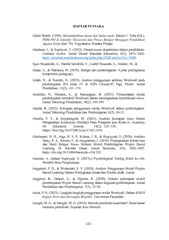 Wahyunita Aldilla, 215060068 (2025) PENGARUH MODEL PROJECT BASED LEARNING BERBANTUAN MEDIA WORDWALL TERHADAP PENINGKATAN PEMAHAMAN PESERTA DIDIK MATA PELAJARAN IPAS. Skripsi(S1) thesis, FKIP UNPAS.