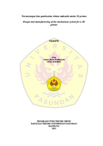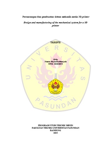 Hadiansyah, Riyan (2025) Perancangan dan pembuatan sistem mekanik mesin 3D printer. Skripsi(S1) thesis, Fakultas Teknik Unpas.