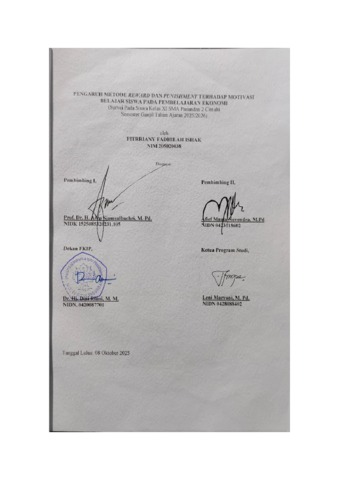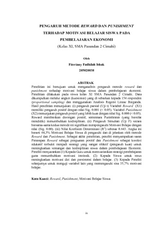 ISHAK FITRRIANY FADHILAH, 205020038 (2025) PENGARUH METODE REWARD DAN PUNISHMENT TERHADAP MOTIVASI BELAJAR SISWA PADA PEMBELAJARAN EKONOMI (Survei Pada Siswa Kelas XI SMA Pasundan 2 Cimahi Semester Ganjil Tahun Ajaran 2025/2026). Skripsi(S1) thesis, FKIP UNPAS.