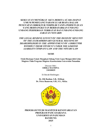 Maudina, Erika (2025) KEKUATAN MENGIKAT AKTA BERITA ACARA RAPAT UMUM PEMEGANG SAHAM LUAR BIASA DALAM PENETAPAN DIREKTUR TERPILIH TANPA PERSETUJUAN YANG BERSANGKUTAN BERDASARKAN UNDANGUNDANG PERSEROAN TERBATAS DAN UNDANG-UNDANG JABATAN NOTARIS THE LEGAL BINDING EFFECT OF THE DEED OF MINUTES OF THE EXTRAORDINARY GENERAL MEETING OF SHAREHOLDERS IN THE APPOINTMENT OF A DIRECTOR WITHOUT THEIR CONSENT UNDER THE LIMITED LIABILITY COMPANY LAW AND THE NOTARY LAW. Thesis(S2) thesis, UNIVERSITAS PASUNDAN.