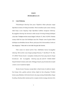 Penelitian ini berjudul “Fenomena Penggunaan Media Sosial YouTube sebagai Sumber Penghasilan Content Creator di Kota Bandung”. Penelitian ini membahas bagaimana content creator di Kota Bandung memanfaatkan platform YouTube untuk menghasilkan pendapatan, serta motif, tindakan, dan makna yang mendasari aktivitas tersebut. YouTube, sebagai fenomena global, telah menjadi sarana vital bagi individu untuk menyalurkan passion, mengekspresikan diri, dan menciptakan peluang ekonomi di era digital. Teori yang digunakan dalam penelitian ini adalah teori fenomenologi. Metode yang diterapkan adalah kualitatif dengan pendekatan fenomenologi, menggunakan teknik pengumpulan data berupa wawancara mendalam, observasi, dan studi literatur. Analisis data dilakukan dengan reduksi data, penyajian data, dan penarikan kesimpulan. Hasil penelitian menunjukkan bahwa motif content creator Bandung dalam menggunakan YouTube adalah perpaduan antara kecintaan pada hobi, potensi finansial yang teridentifikasi, kebutuhan akan fleksibilitas, keinginan untuk memberikan manfaat kepada audiens, serta dorongan aktualisasi diri. Tindakan mereka meliputi konsistensi unggah, optimasi konten (SEO dan visual), diversifikasi monetisasi (iklan dan endorsement), responsivitas terhadap audiens, dan pengembangan komunitas. Makna YouTube bagi mereka mencakup kepuasan dari dampak positif konten, pemenuhan passion yang menghasilkan uang, aktualisasi diri, kontribusi finansial, serta apresiasi dari audiens dan keberlanjutan kanal. Penelitian ini mengungkapkan bahwa penggunaan YouTube sebagai sumber penghasilan di Bandung tidak hanya memperkaya pengalaman pribadi content creator tetapi juga membuka dimensi baru dalam dunia kerja dan ekspresi diri di era digital. Kata Kunci : Fenomena, YouTube, Sumber Penghasilan, Content Creator, Bandung