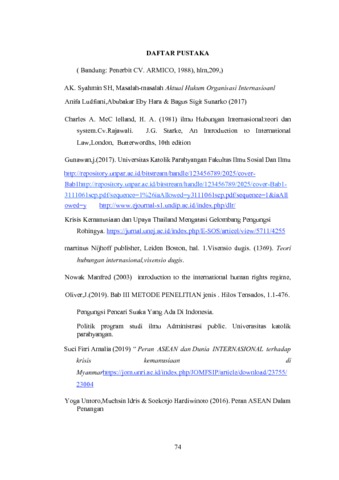 Bismi Annisa, 172030192 (2022) PERAN ASEAN DALAM MENANGANI KASUS KRISIS KEMANUSIAAN ETNIS ROHINGYA DI MYANMAR. Skripsi(S1) thesis, FISIP UNPAS.
