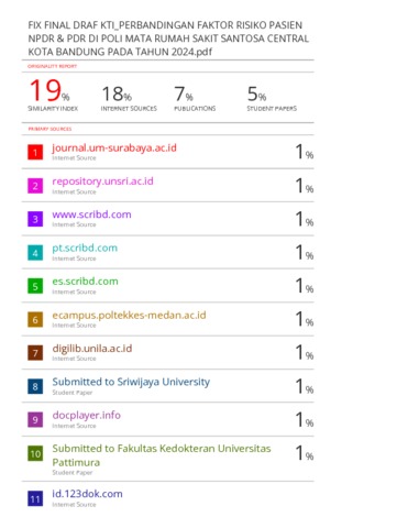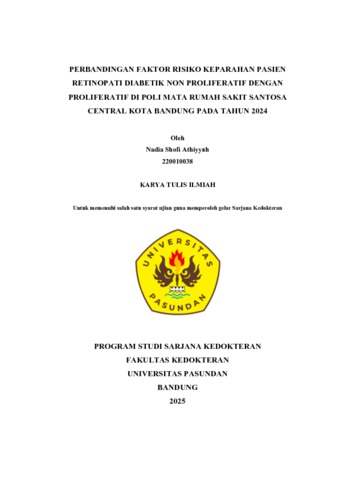 Nadia Shofi Athiyyah, 220010038, Athiyyah Shofi , 220010038 (2025) PERBANDINGAN FAKTOR RISIKO KEPARAHAN PASIEN RETINOPATI DIABETIK NON PROLIFERATIF DENGAN PROLIFERATIF DI POLI MATA RUMAH SAKIT SANTOSA CENTRAL KOTA BANDUNG PADA TAHUN 2024. Skripsi(S1) thesis, UNIVERSITAS PASUNDAN.