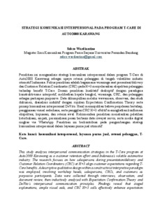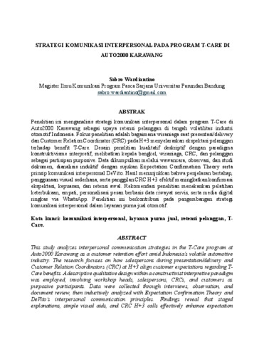 Wardiantino, Sabro (2025) STRATEGI KOMUNIKASI INTERPERSONAL PADA PROGRAM T-CARE DI AUTO2000 KARAWANG. Thesis(S2) thesis, UNIVERSITAS PASUNDAN.