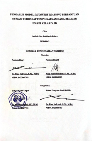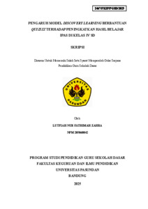 ZAHRA LUTFIAH NUR FATHIMAH, 205060042 (2025) PENGARUH MODEL DISCOVERY LEARNING BERBANTUAN QUIZIZZ TERHADAP PENINGKATKAN HASIL BELAJAR IPAS DI KELAS IV SD. Skripsi(S1) thesis, FKIP UNPAS.