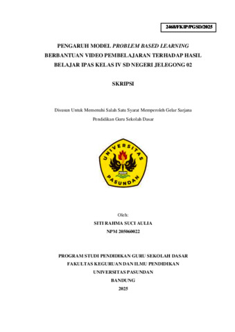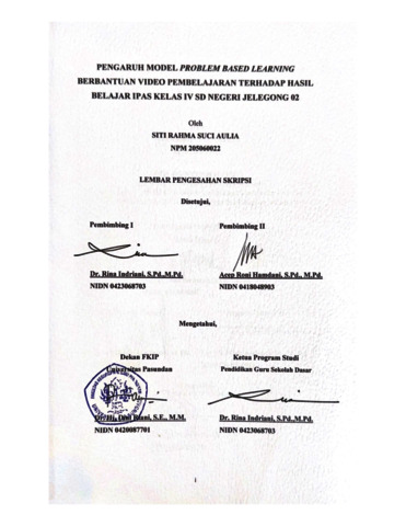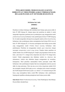 PENGARUH MODEL PROBLEM BASED LEARNING BERBANTUAN VIDEO PEMBELAJARAN TERHADAP HASIL BELAJAR IPAS KELAS IV SD NEGERI JELEGONG 02