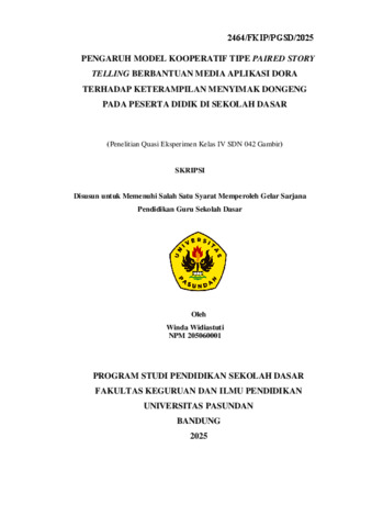 WidiastutiWinda, 205060001 (2025) PENGARUH MODEL KOOPERATIF TIPE PAIRED STORY TELLING BERBANTUAN MEDIA APLIKASI DORA TERHADAP KETERAMPILAN MENYIMAK DONGENG PADA PESERTA DIDIK DI SEKOLAH DASAR (Penelitian Quasi Eksperimen Kelas IV SDN 042 Gambir). Skripsi(S1) thesis, FKIP UNPAS.