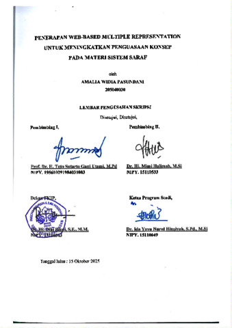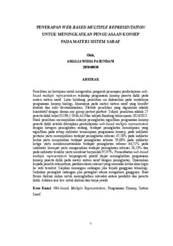 PASUNDANI AMALIA WIDIA, 205040030 (2025) PENERAPAN WEB-BASED MULTIPLE REPRESENTATION UNTUK MENINGKATKAN PENGUASAAN KONSEP PADA MATERI SISTEM SARAF. Skripsi(S1) thesis, FKIP UNPAS.